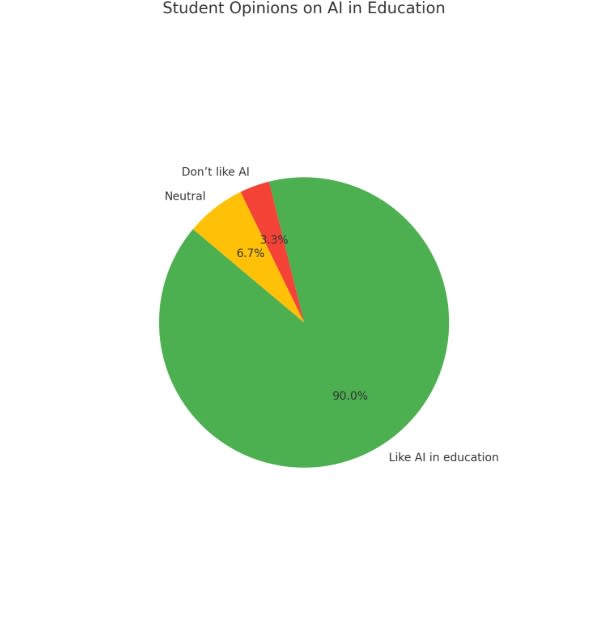 As the pie chart above illustrates, a vast majority of students (90%) have a favorable view of AI in the classroom. Many cited efficiency, ease of access to information, and help with writing as top reasons. The one student who expressed disapproval mentioned concerns about academic integrity and dependency.