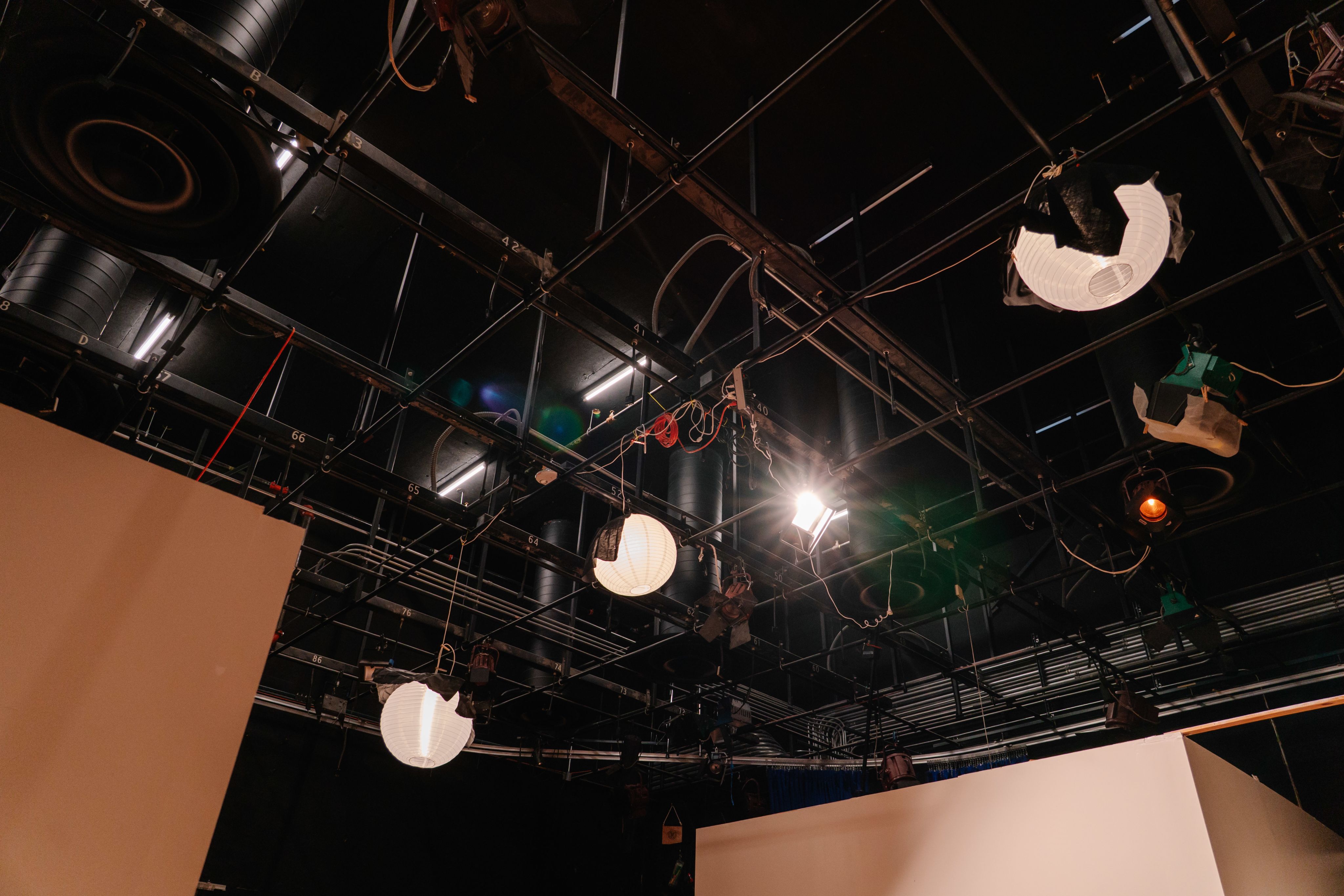 TCU’s studio lighting rig gives students full control over cinematic illumination, featuring adjustable grids, softboxes, and spotlights that mimic professional set environments for dynamic scene shaping and lighting design.