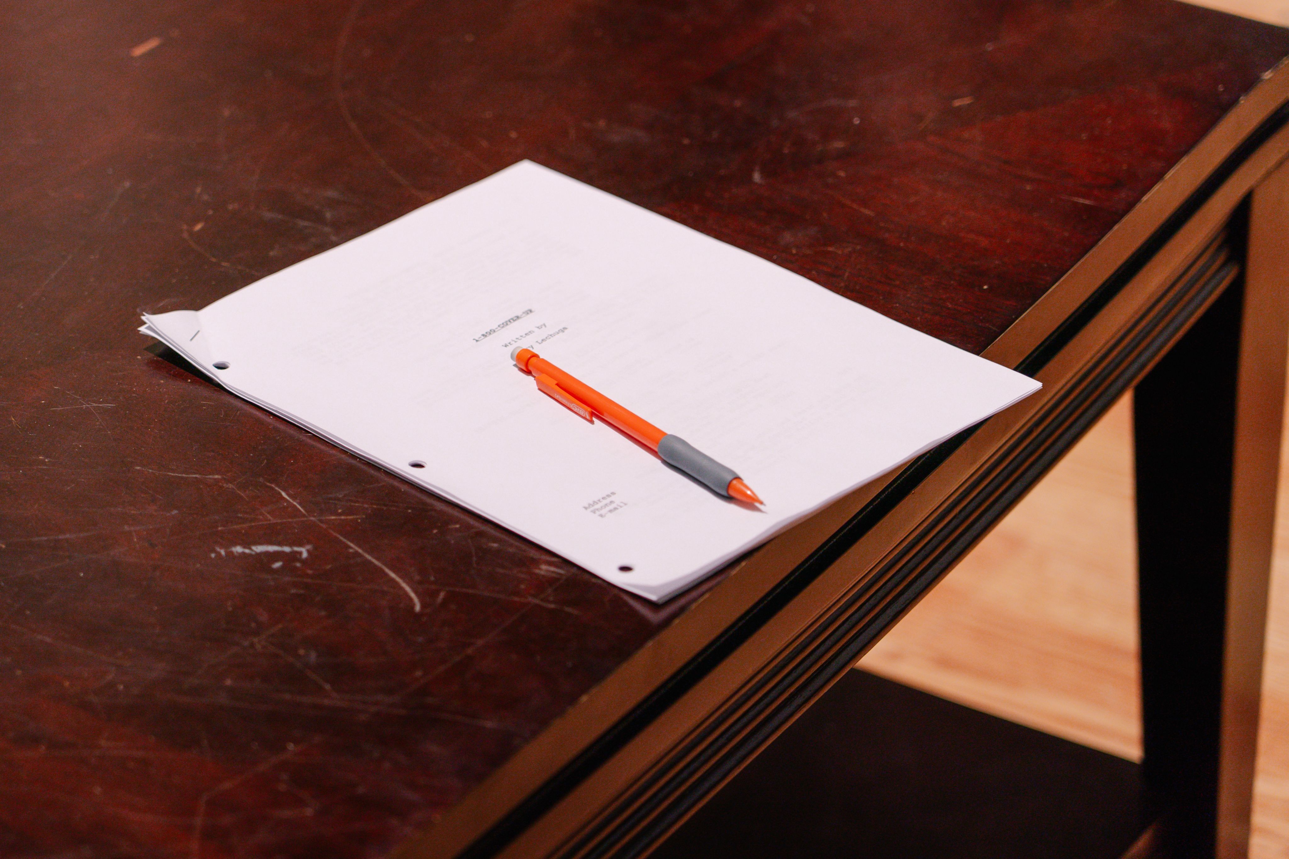 The production class meets in the media lab to do a first read of the script. 1-800-COVER-UP, written and produced by Ivery Lechuga, a junior double major in FTDM and creative writing, follows a group of students who are hired to clean up murders by the murderer themselves. When a local cop becomes suspicious, the students fight to clear the evidence.