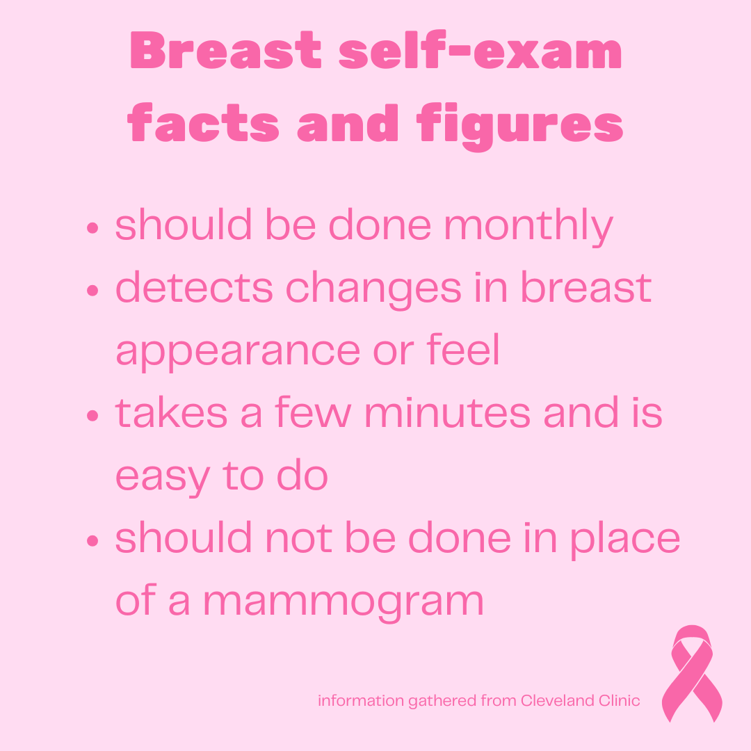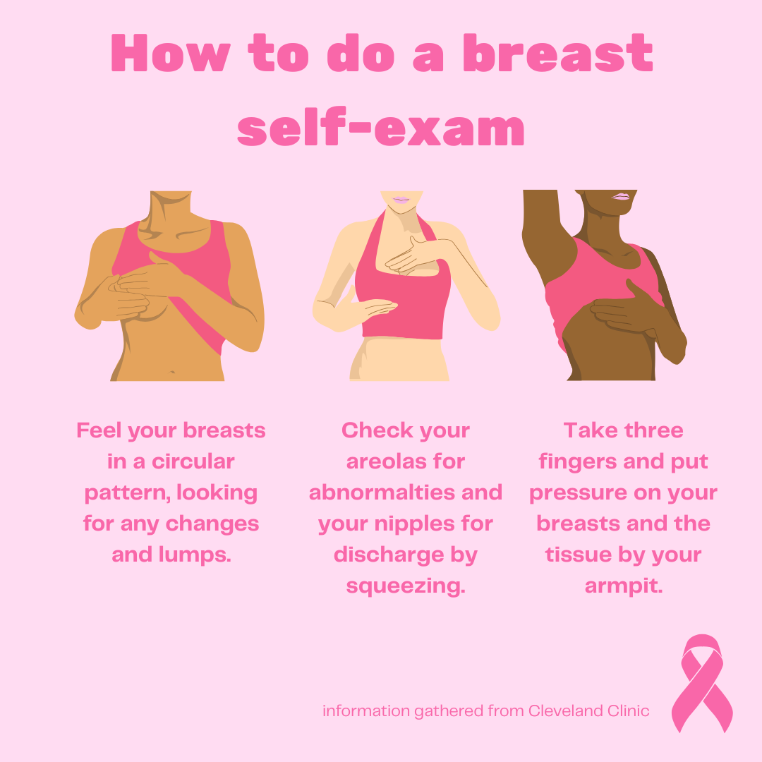 Breast self-exams should be completed monthly to learn what your breasts feel like and to better know when something is not normal, Anglin said.