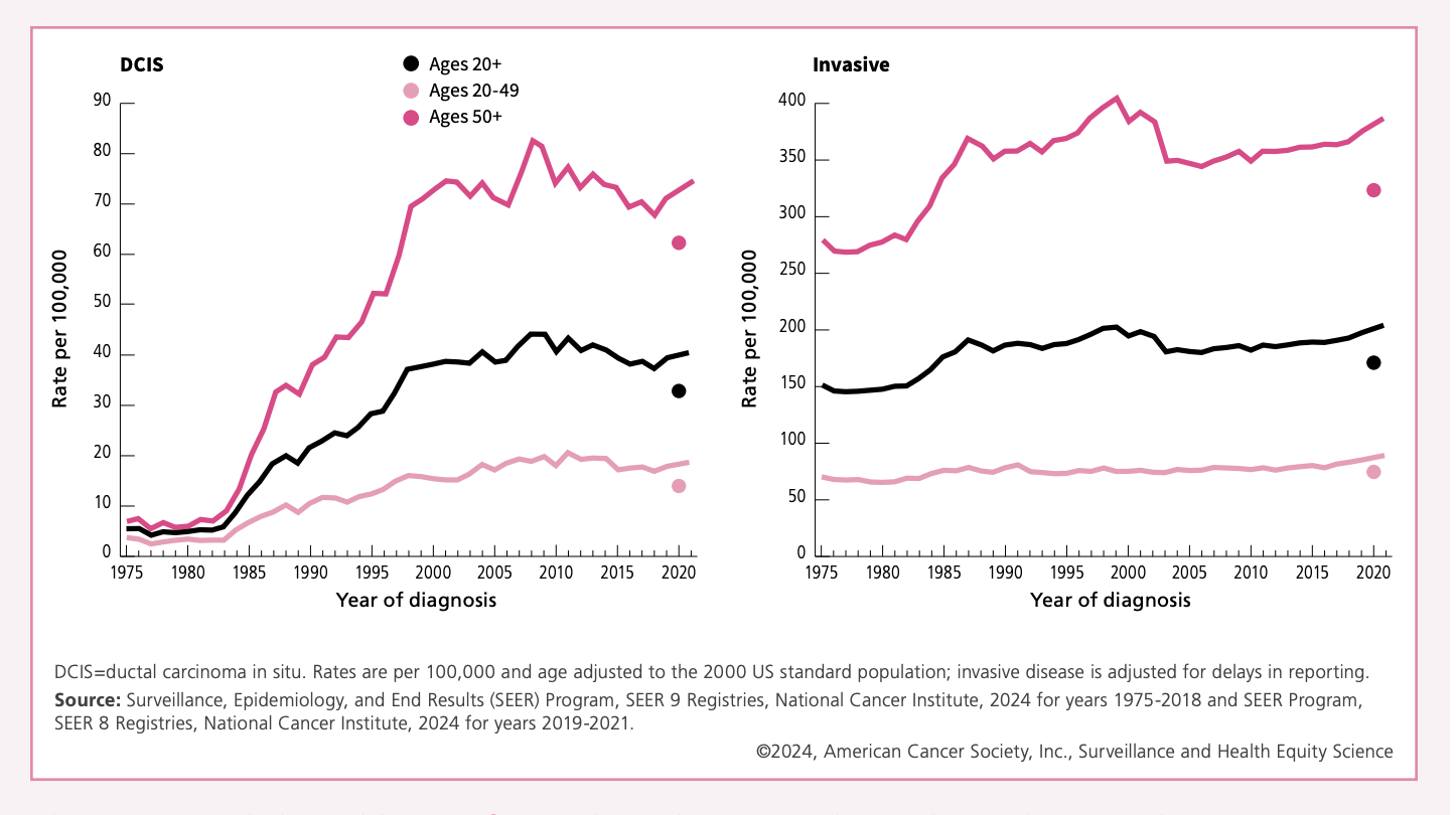 Early-onset breast cancer affects women’s ages 18-45. Over the past decade, incidence rates have rose by 1.4% each year for women under 50 years old, according to data from the American Cancer Society