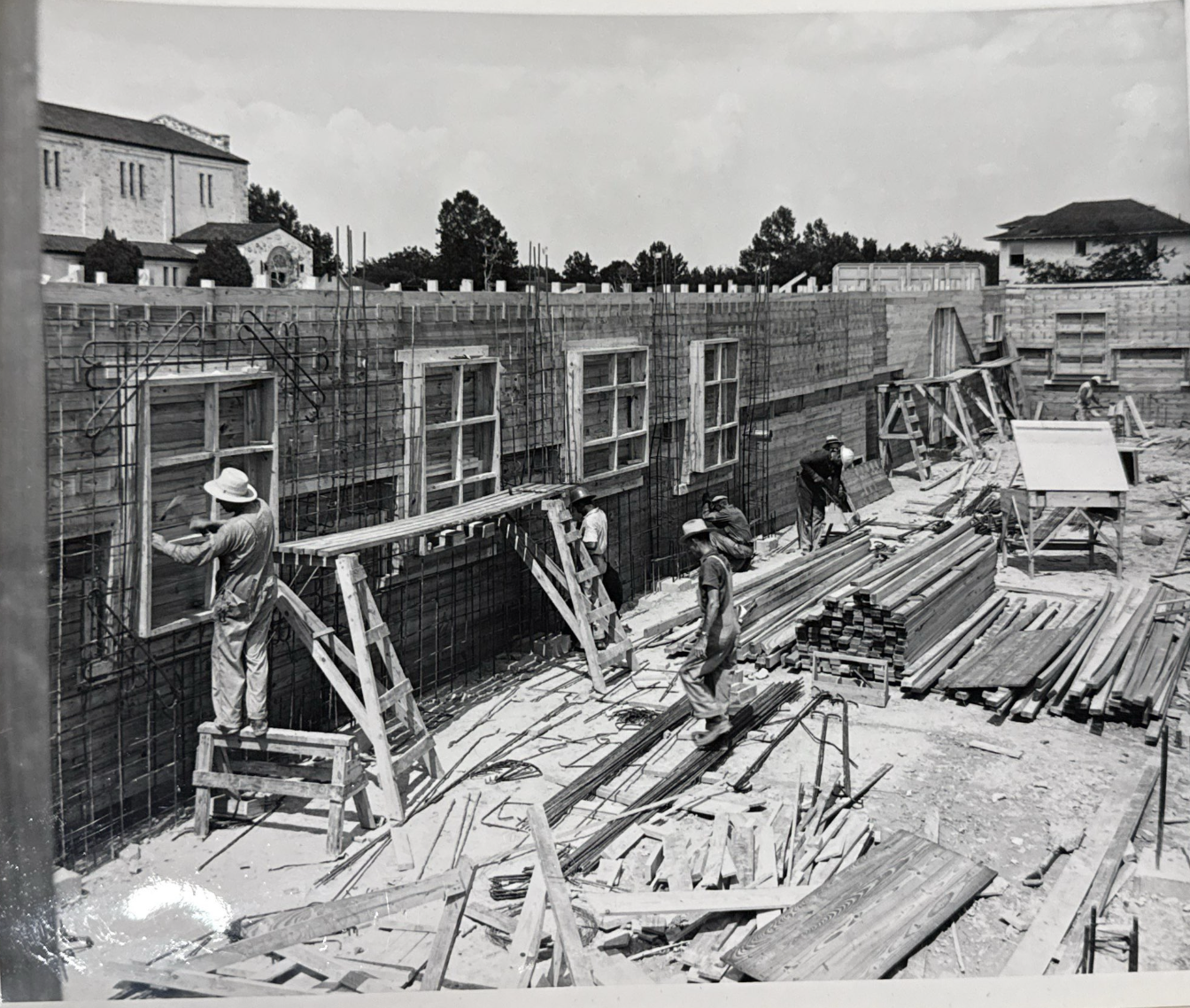Construction on TCU Fine Arts Building in 1948 (Fort Worth Star Telegram/TCU Special Collections)