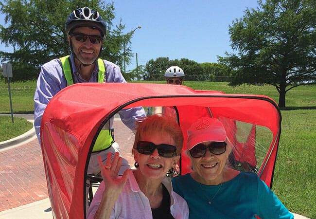 “We were the first Cycling Without Age program in Texas,” Whitworth said. “It started in Copenhagen, Denmark, and I saw it while teaching there for five summers. When one of the residents at Trinity Terrace ordered a rickshaw, it all came together.”