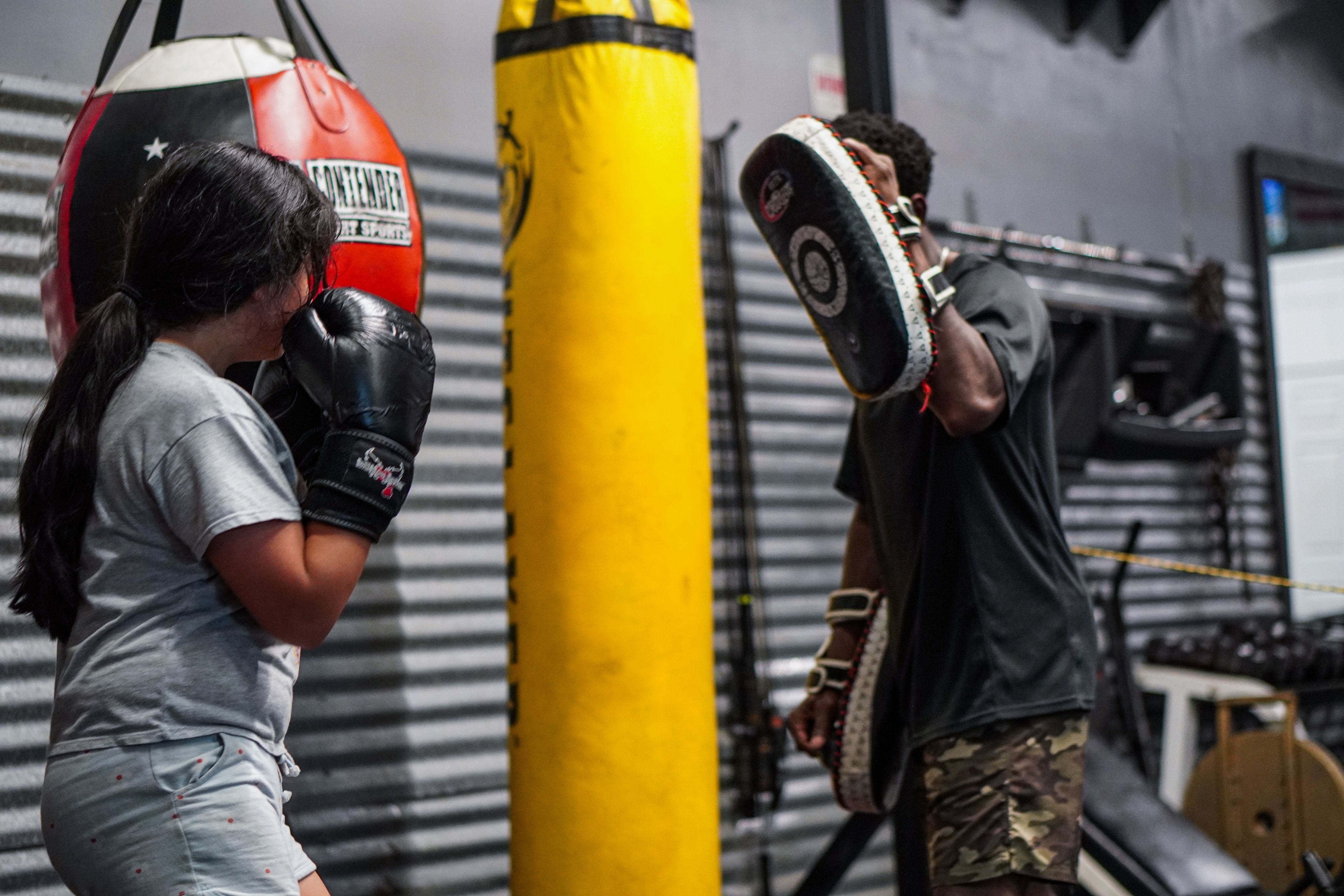 The rhythm of fists cracking into pads, legs snapping against heavy bags, each hit echoing through the space and vibrating over the bass of the speakers.
