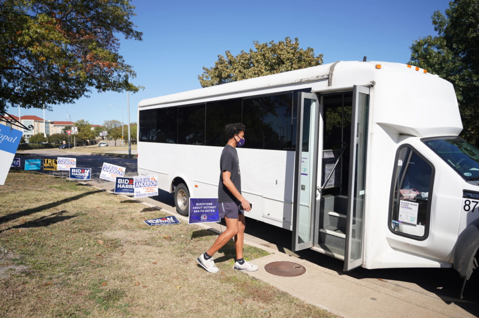TCU provided transportation to the Trinity Episcopal Church voting site on Tuesday, Nov. 3, 2020. Polls across Tarrant County seemed empty on Election Day. (Heesoo Yang/Staff Photographer)