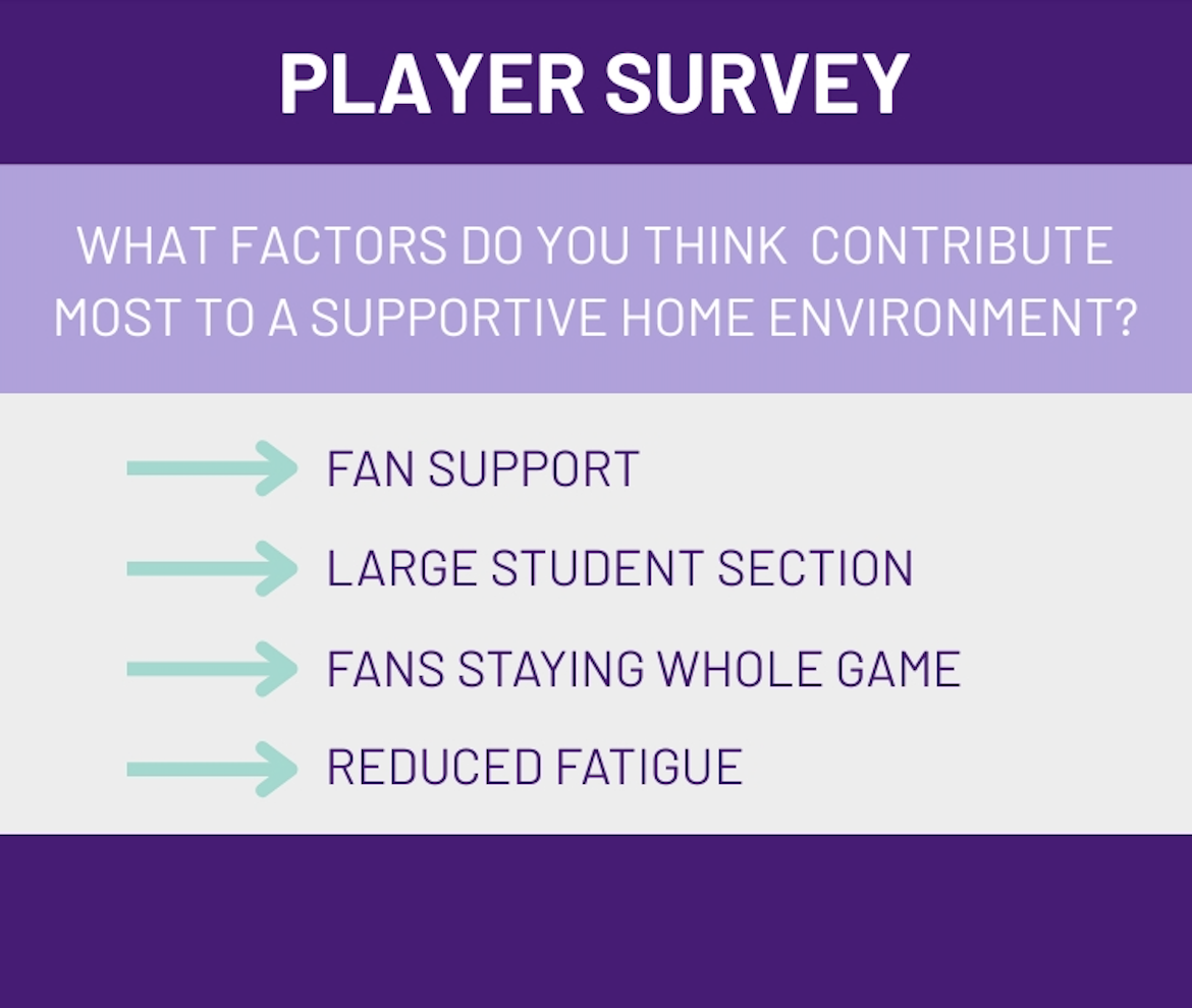 Specifically, he highlighted several elements that create an ideal home atmosphere: a large student section, crowd noise, fans staying for the whole game and reduced fatigue from not having to travel.