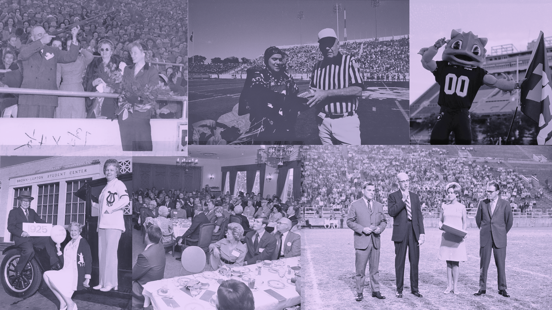 Historical photos reveal vintage convertibles carrying homecoming queens, antique fire engines decked in purple ribbons transporting alumni celebrating milestone reunions and animated student floats featuring whimsical designs that often playfully taunted the weekend's football opponent.