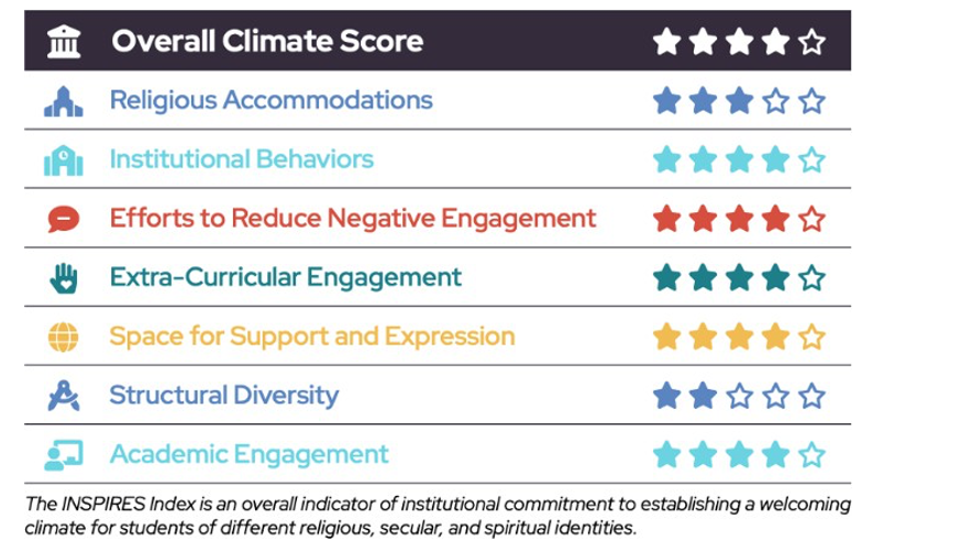 TCU participates in INSPIRES (Interfaith, Spiritual, Religious, and Secular Campus Climate Survey), an assessment tool that measures how well the university fosters a welcoming environment for students of all religious and non-religious identities.