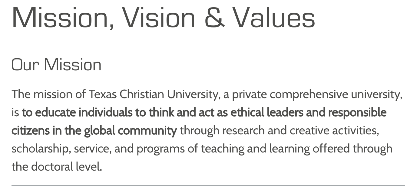 TCU has made efforts to hold onto its religious identity through its accepting funding from the Disciples of Christ Church and its support of the Disciples, it’s also made decisions to remove words like "Christian principles" and "God" from its mission statement.