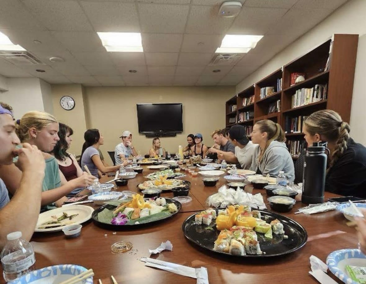 TCU Hillel gathers for a sushi night event in Jarvis Hall (Gabby Sandberg).