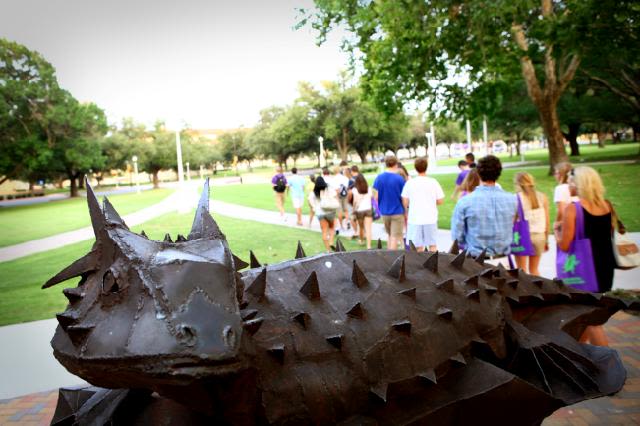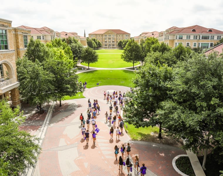 Incoming students walking through campus on a tour. (Photo: TCU Student Development Services)