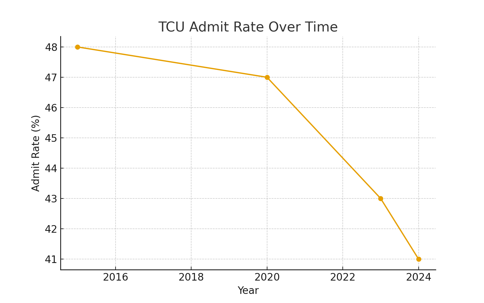 TCU Admission Rate Line Chart. (Source: TCU Institutional Research)
