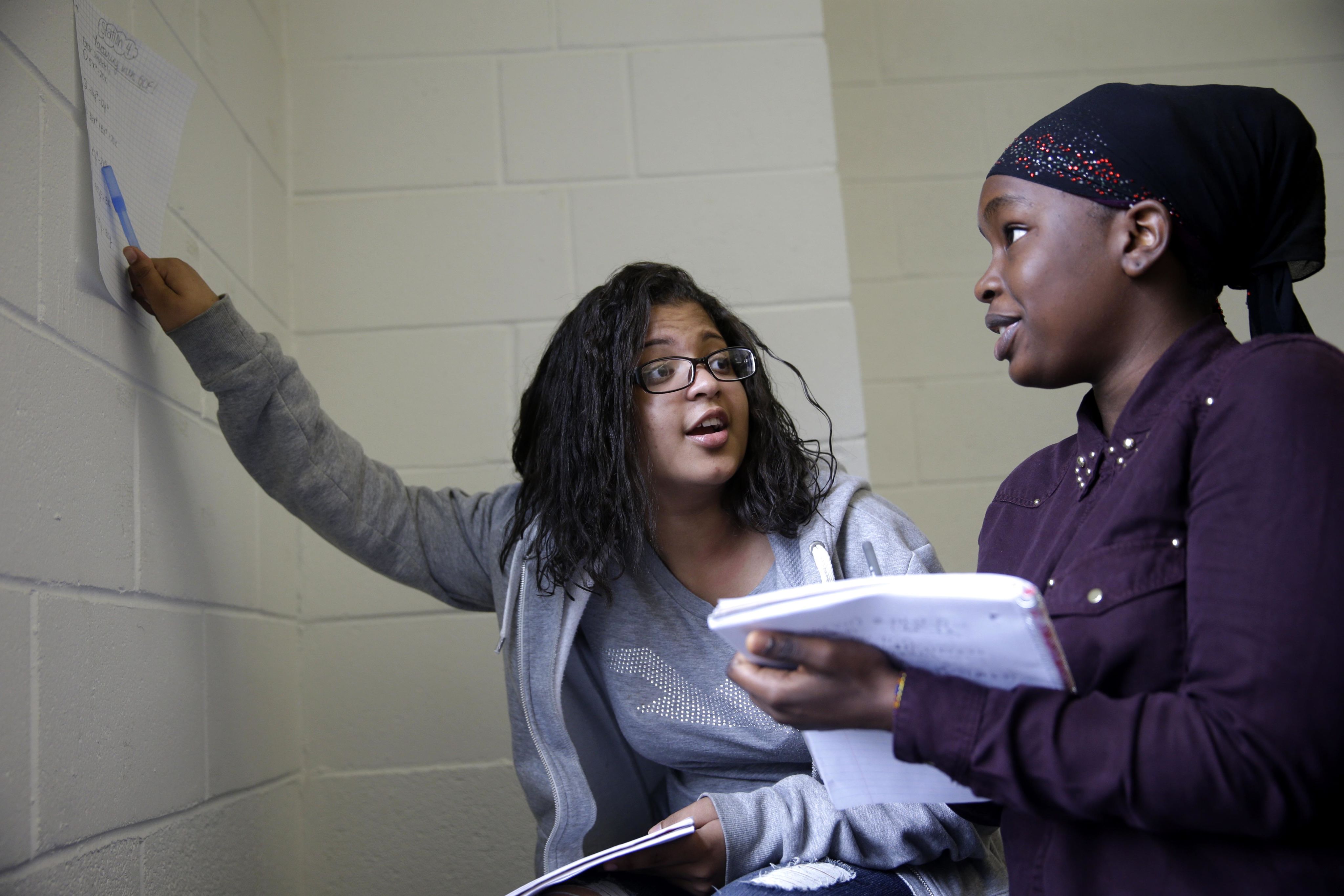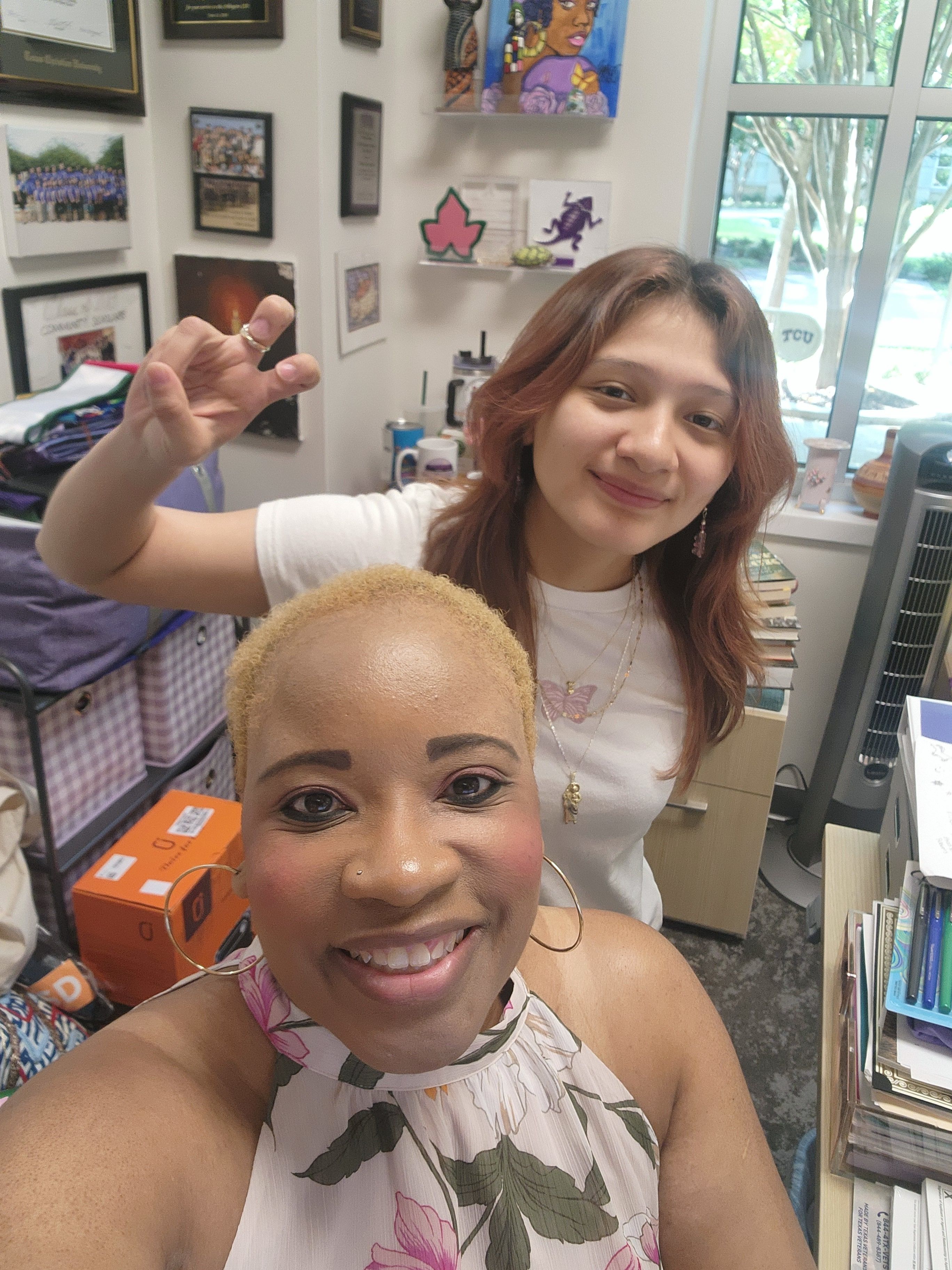 Tameka Gordon, Director of Intercultural Center and Student Identity & Engagement, and student Julybeth in the Community Scholars office. (Photo courtesy of Tameka Gordon)