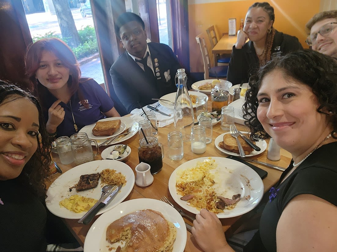 The Community Scholars staff and two students at Yolk, after the program received a special resolution at the Tarrant County Commissioners Court recognizing the 25th Anniversary of the TCU Community Scholars Program. (Photo courtesy of Tameka Gordon)