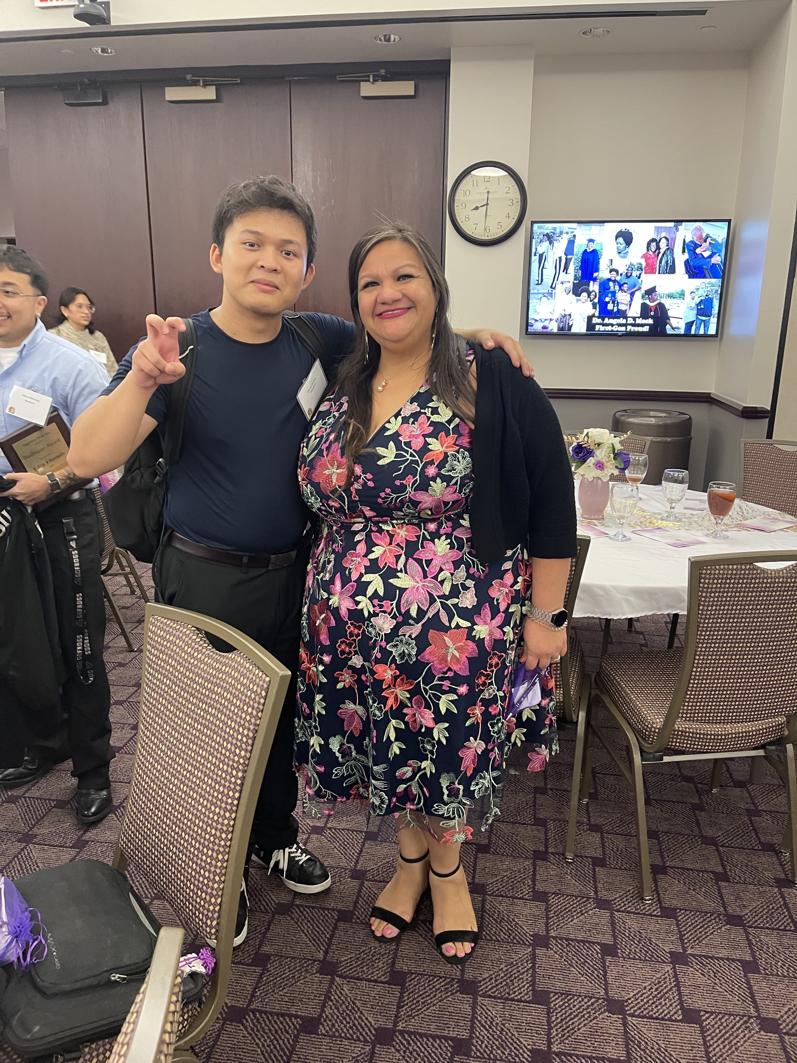 First-generation student David Duong and Director of Student Support Services, Cynthia Montes, at an event. (Photo courtesy of David Duong)