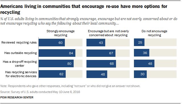 The availability of recycling infrastructure, such as recycling bins, drop-off centers, and curbside collection services, has a significant impact on people's willingness to recycle.