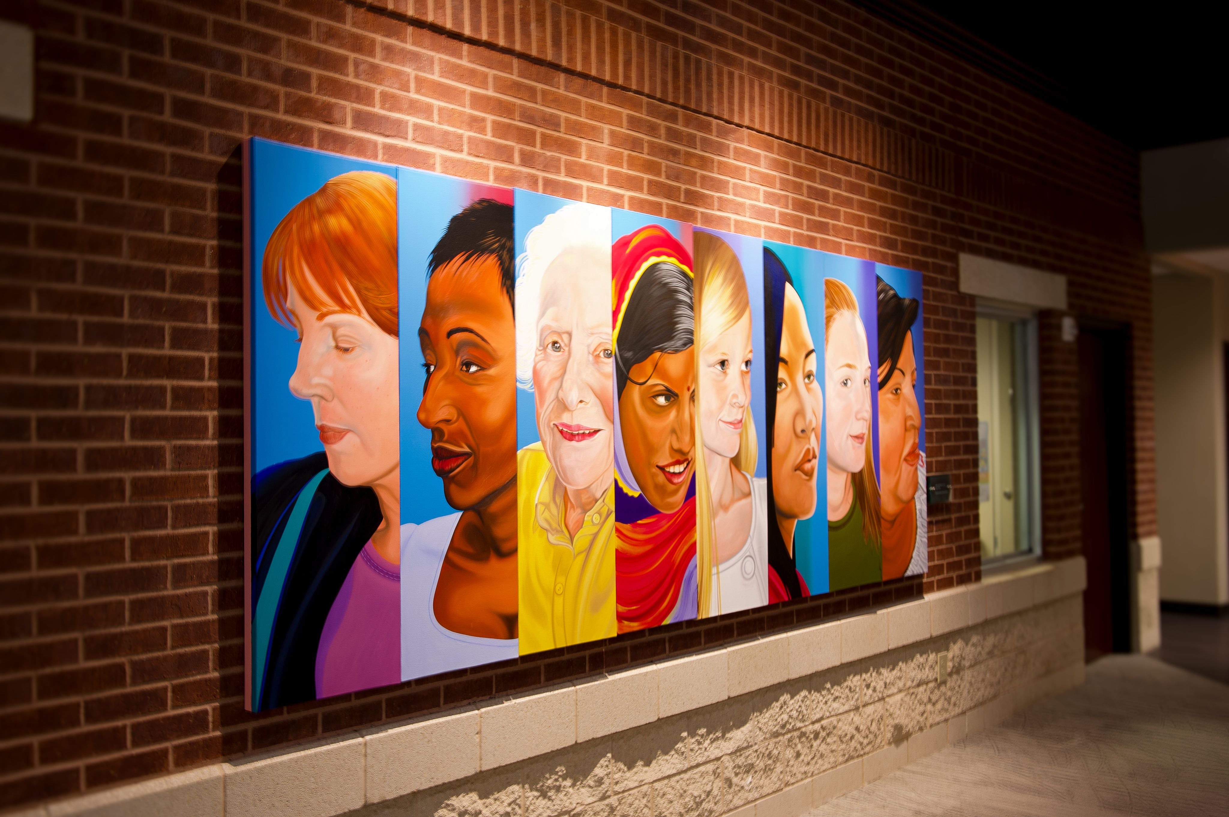 A painting of eight different women inside The Women's Center. Despite their differences, they share one commonality: womanhood.