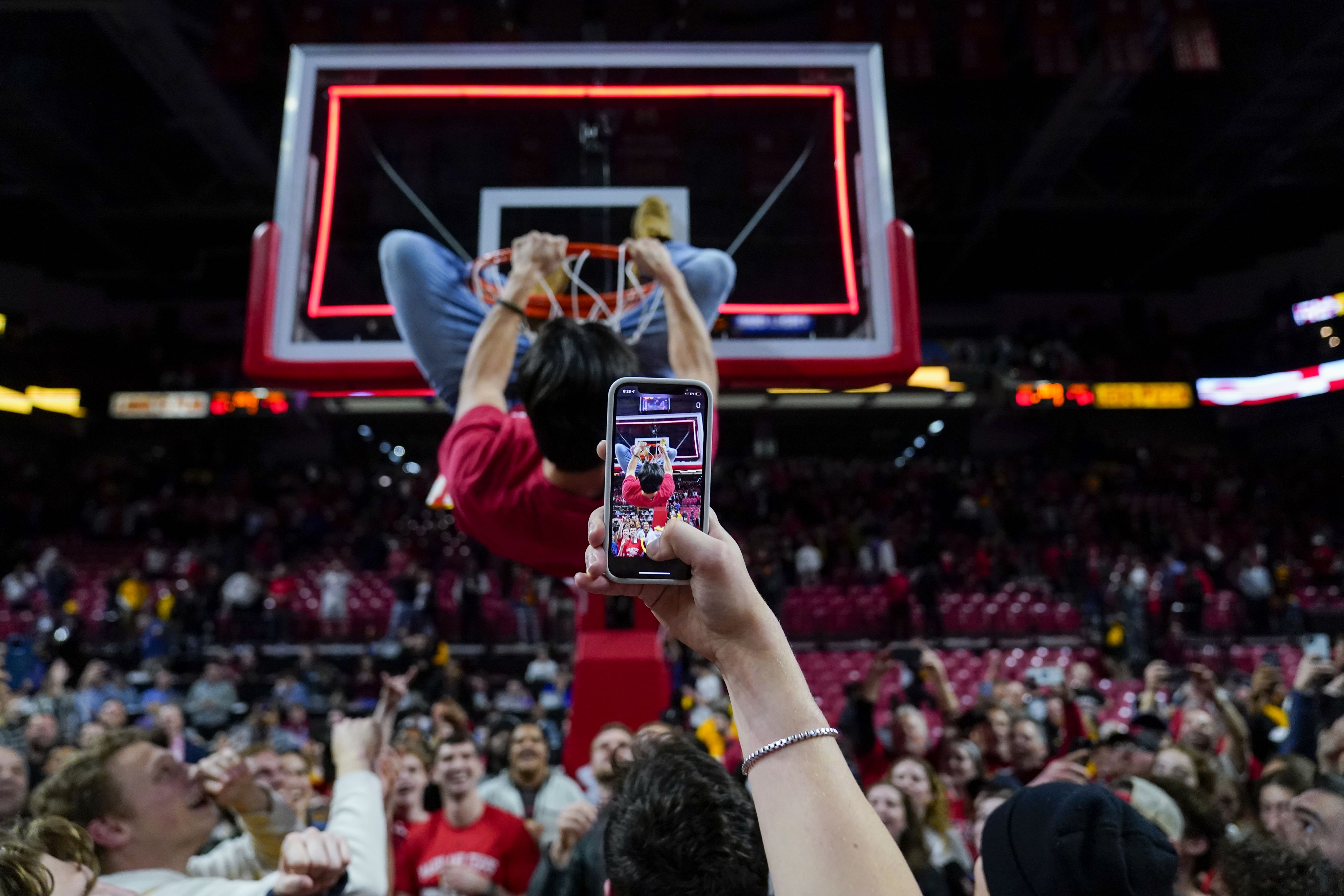 A college student takes a photo post game. Capturing and sharing moments is a common part of the student sports experience. (AP Photo/Julio Cortez)