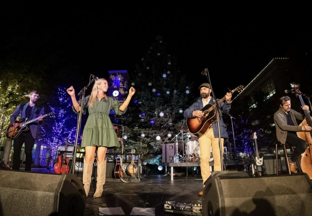Drew and Ellie Holcomb perform at the 2022 Christmas tree lighting. (Photo courtesy of @texaschristianuniversity Instagram)