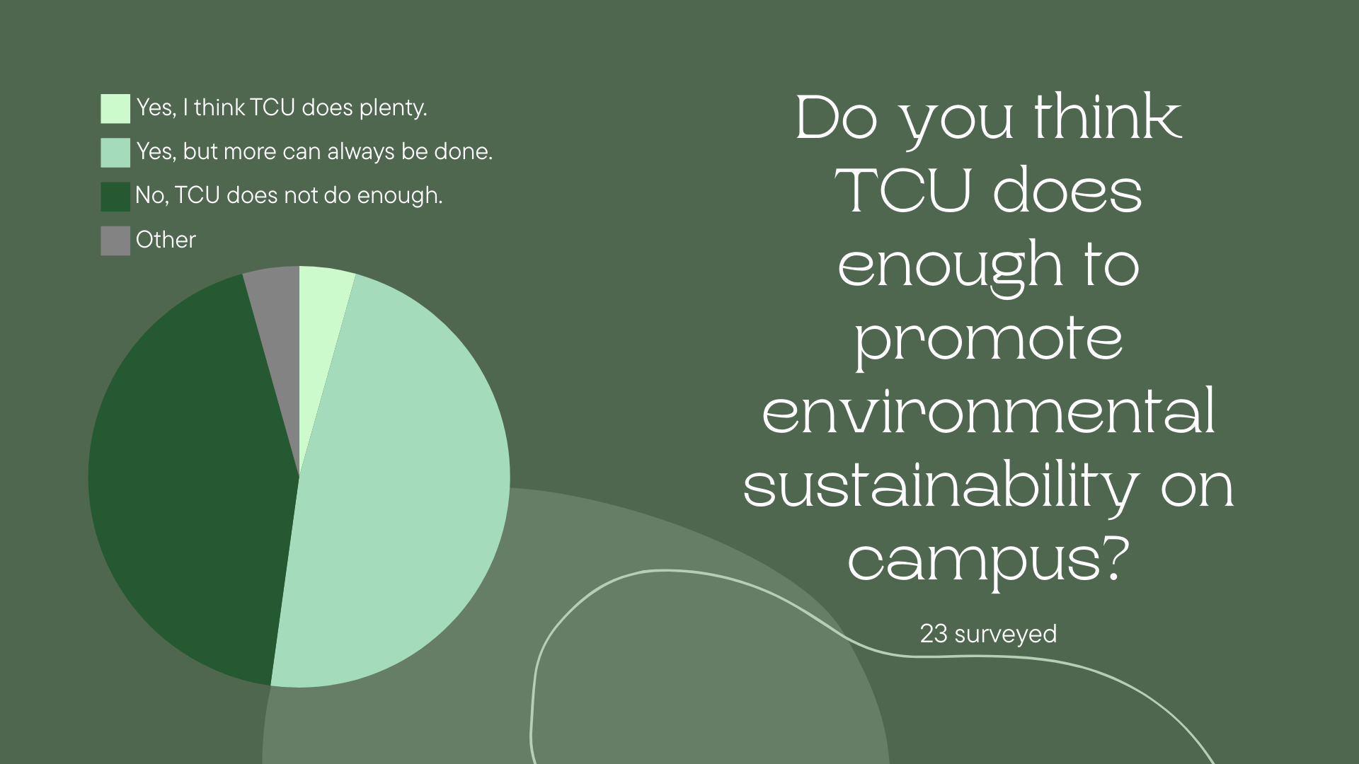 A survey found that TCU students are in split decision when it comes to whether they think the university is doing enough to promote sustainability on campus.