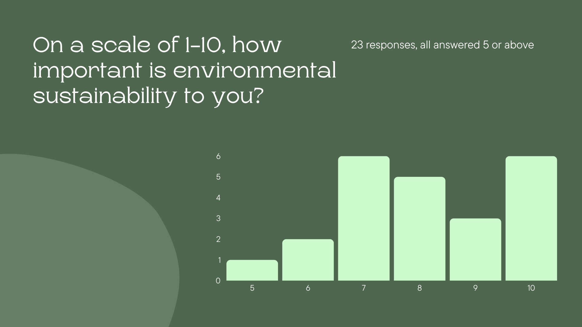 On a scale from 1-10, all students in the sample ranked the importance of environmental sustainability at 5 or above.