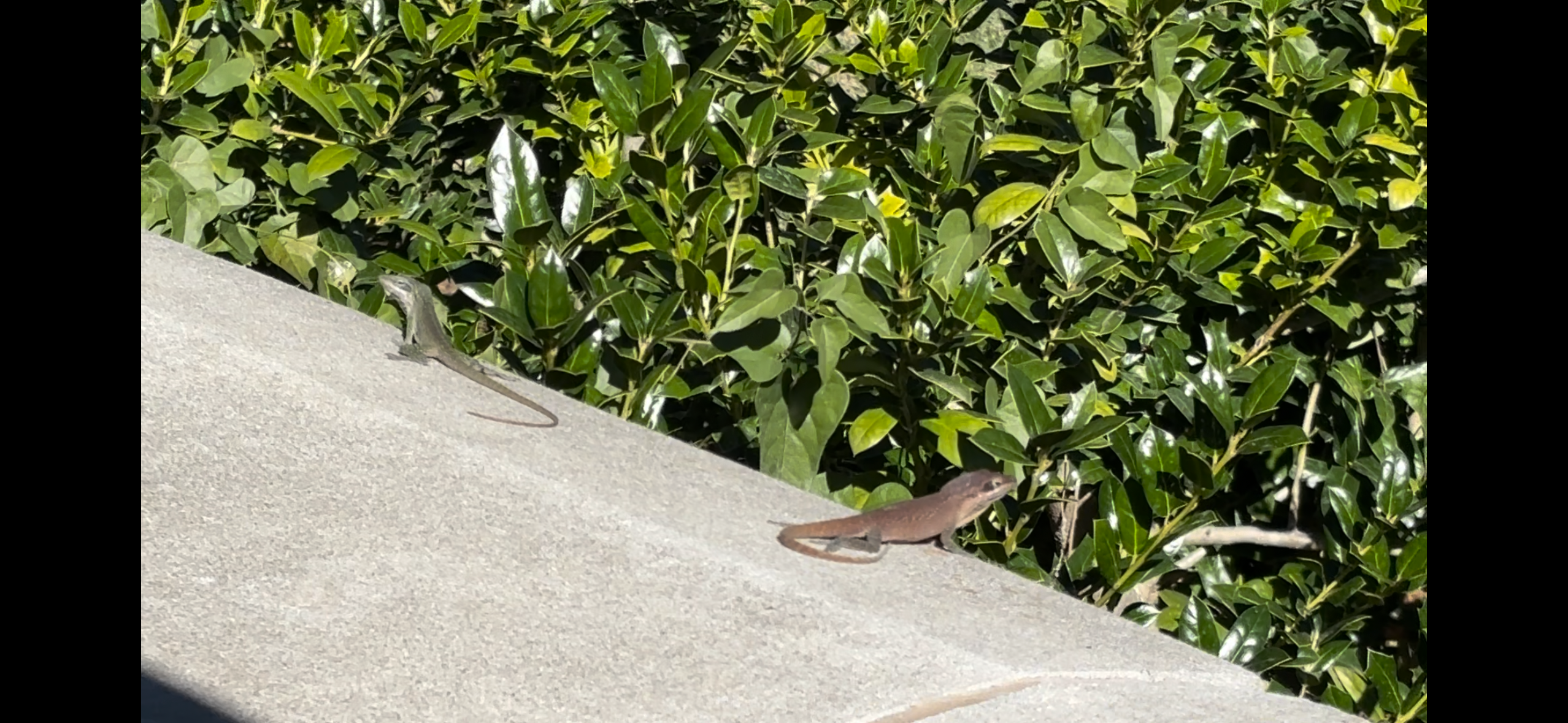 Two lizards bask in the sun on concrete near the Tom Brown/Pete Wright apartments. (Ella Mercer)