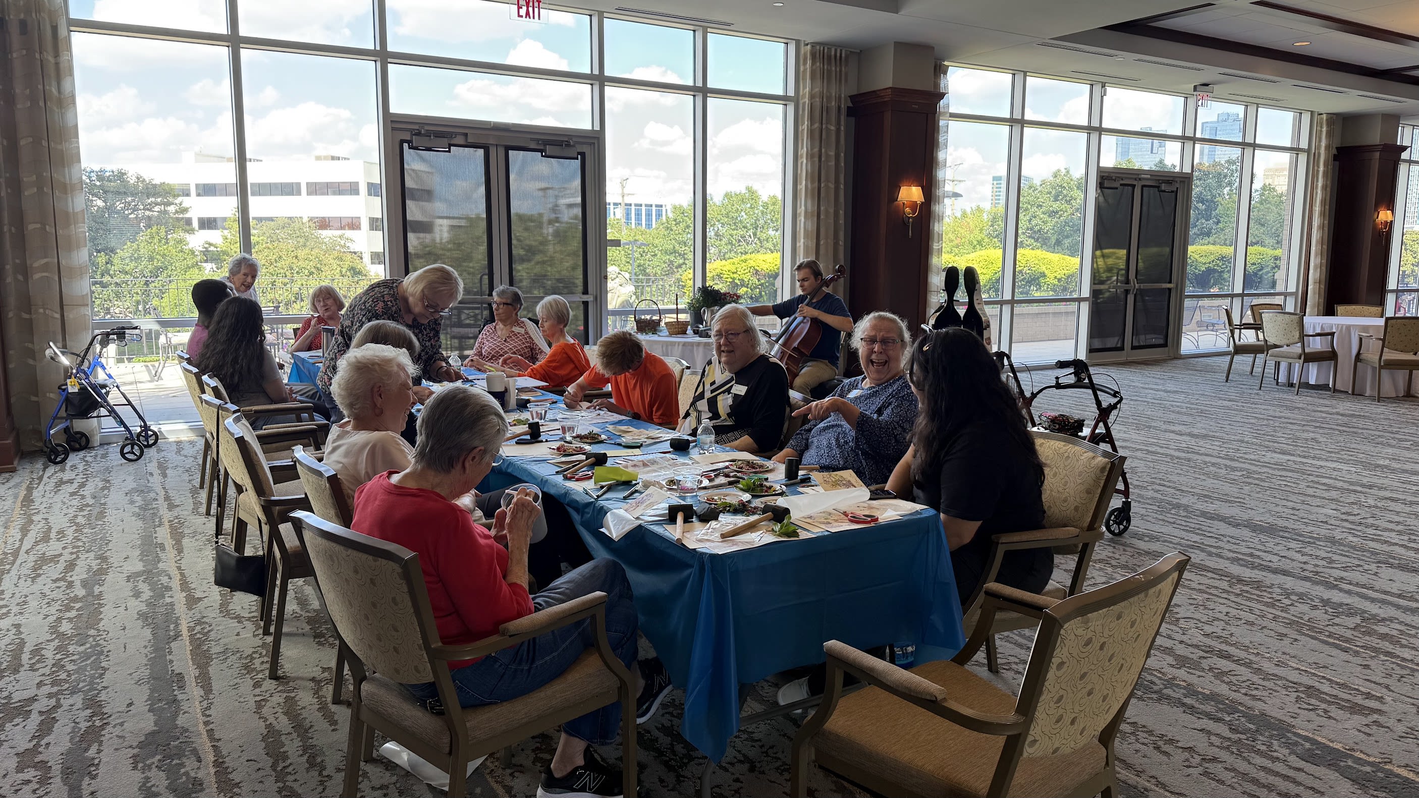 There's a chorus from the taps of women pressing flowers onto cardstock. It kept time with the rhythms from the strings of a cello being bowed in the corner.