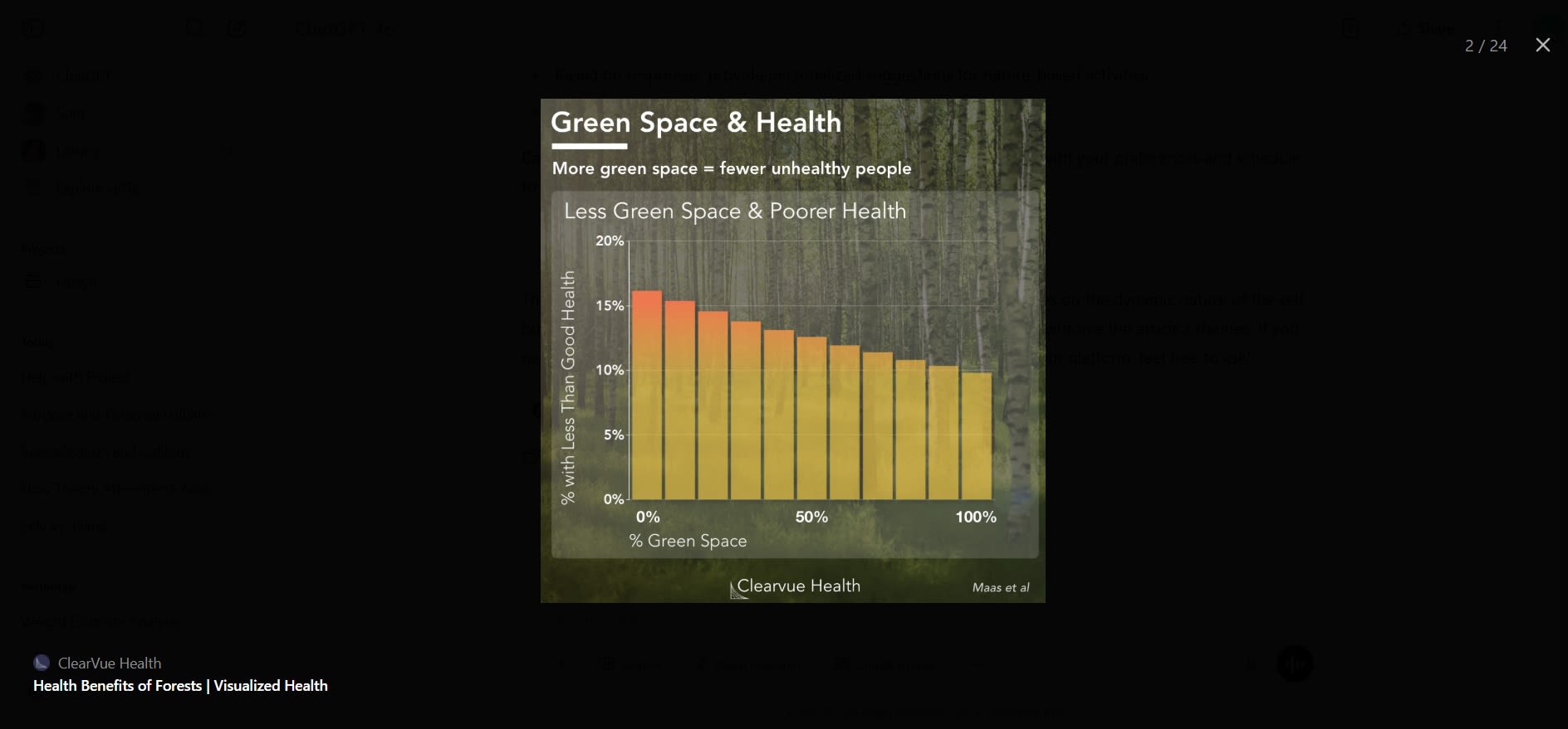 A lack of green space is linked to higher rates of poor health outcomes. This graph from Clearvue Health reinforces Dr. Blake Hestir’s point that reconnecting with nature isn’t just restorative — it’s essential to our well-being and sense of purpose.