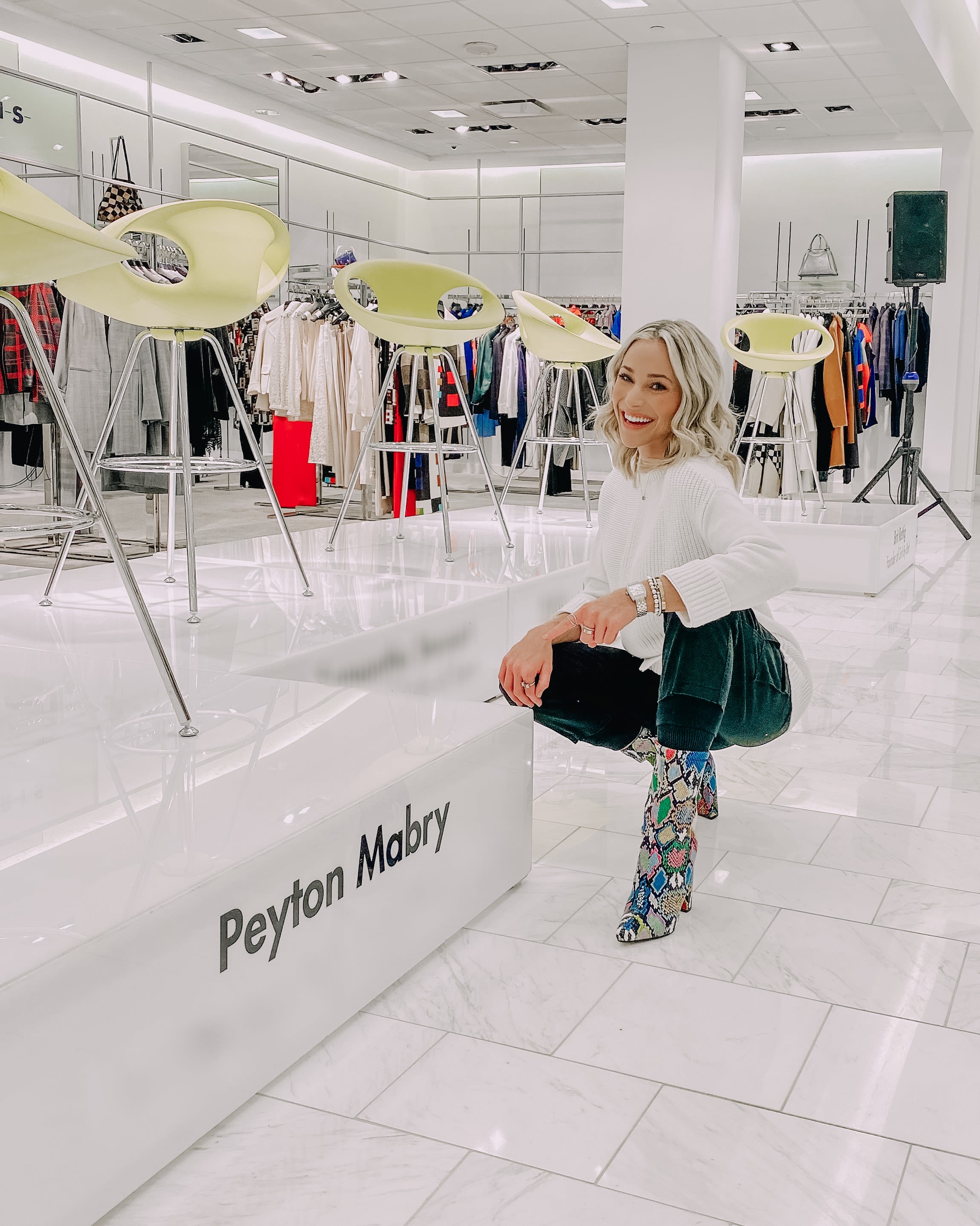 Mabry is shown posing by her name at the Neiman Marcus Entrepreneurship Panel in 2019. (Photo: Peyton Mabry)