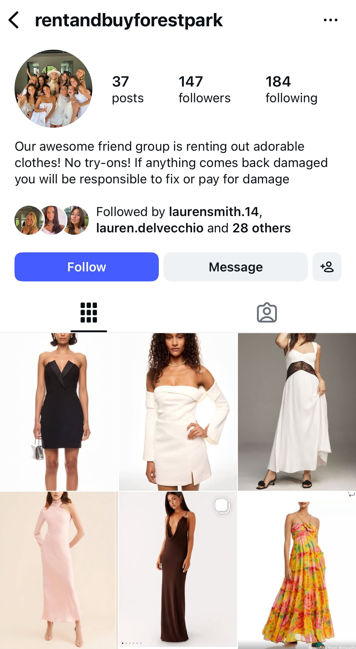Burgess prices items based on their original cost and condition. Tops might rent for $15–$40, while formal dresses can range from $30–$75. Burgess says she contacts the person interested through direct message on Instagram and relies on Cash App and Venmo for ease of transaction.
