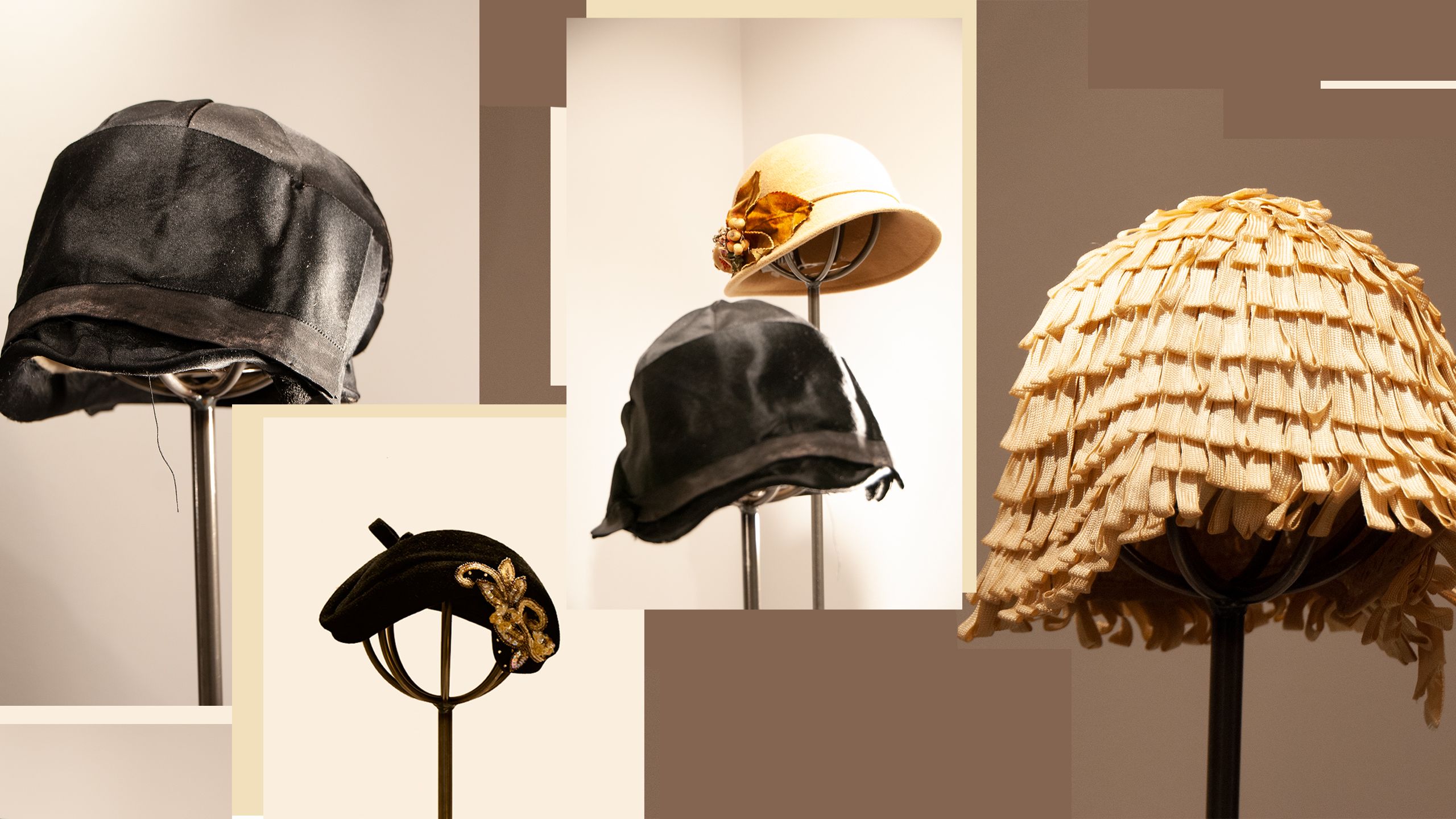 The display showcases the tubular silhouette and a popular accessory of the time hats. The tubular silhouette was popular in the ‘20s as women shifted away from wearing restrictive clothes and corsets and began to embrace the loose, free flowing silhouette. Additionally, with almost every outfit, women would wear an elaborate accessory on their head, said Solis.