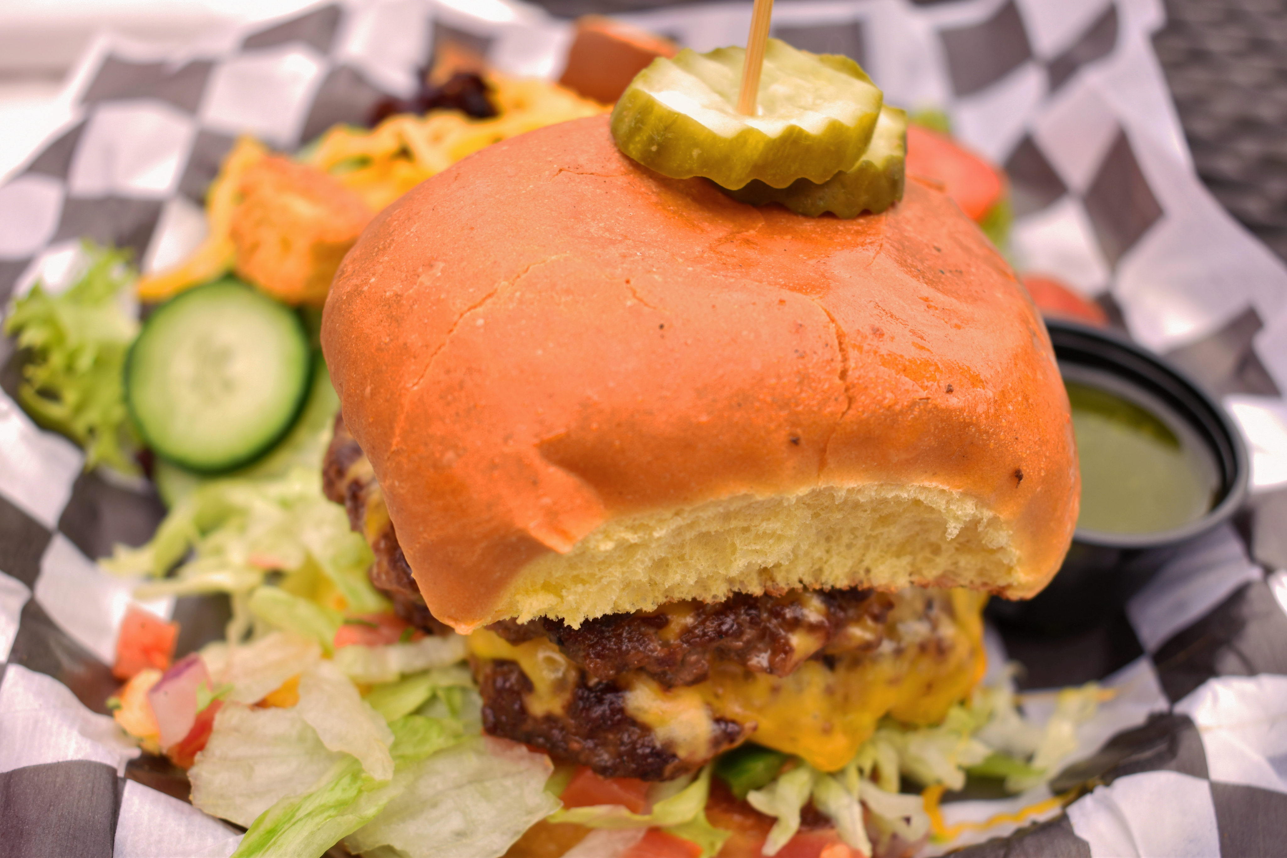 Rogers Roundhouse burger consists of two thin patties, shredded cheddar, shredded lettuce, pico, and Roger's sauce. (Photo by Hope Crockett)