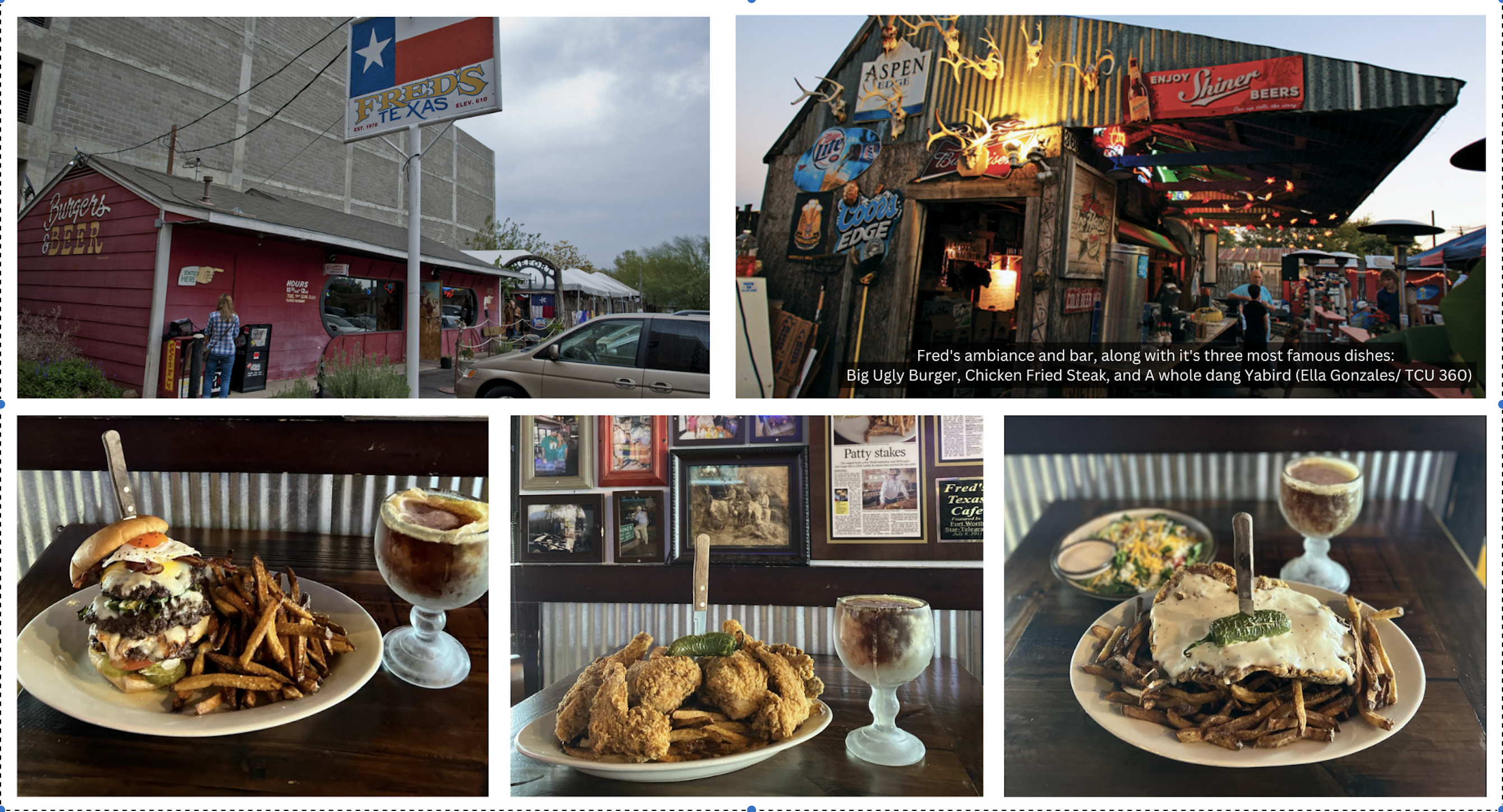 Fred’s will always stay in Fort Worth because of it’s family history and new chef. Natives will keep coming back for the “cold beer,” “great atmosphere,” and “good burgers.”
