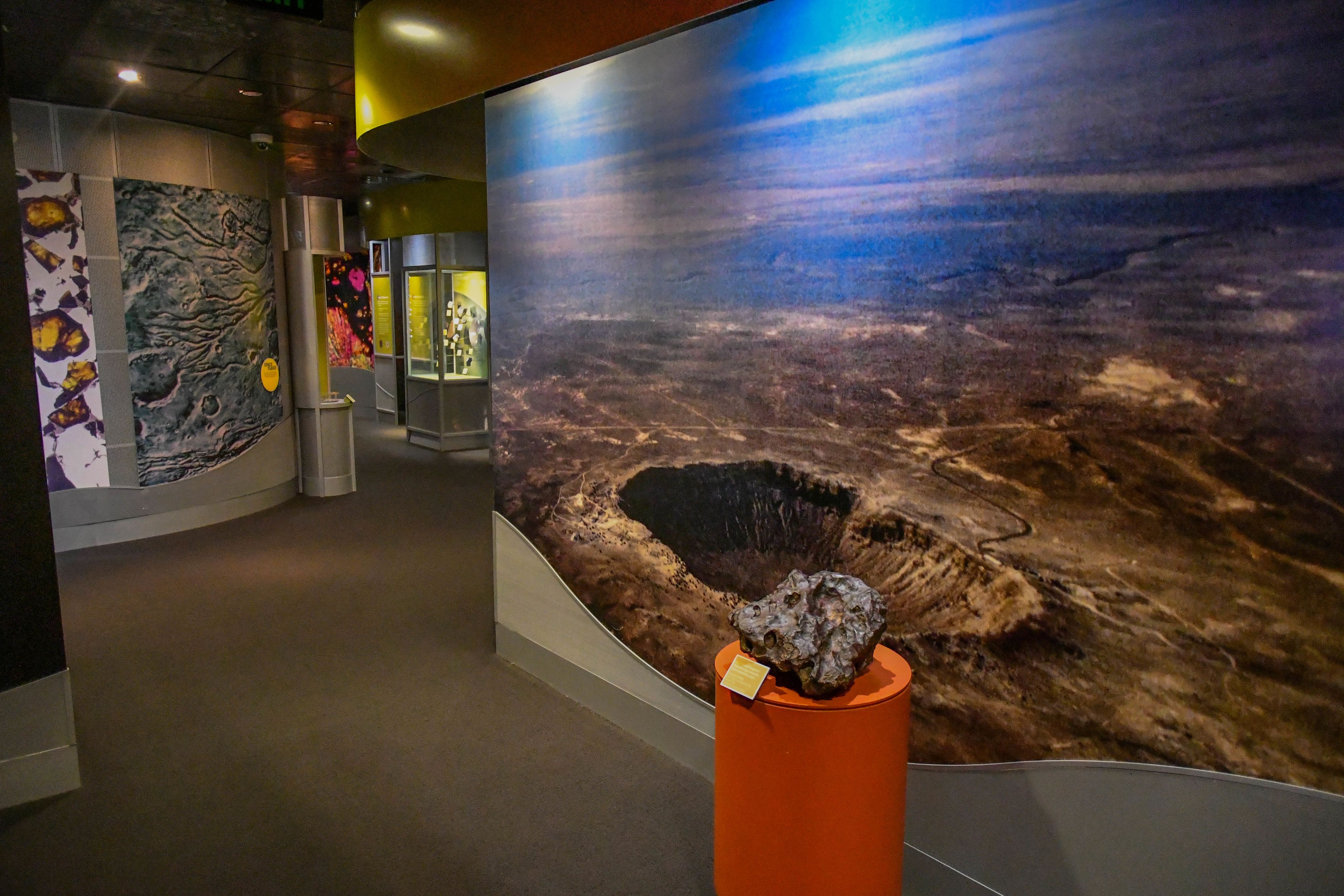 In the hallway of the museum sits a meteorite replica for visitors to look at and even touch.