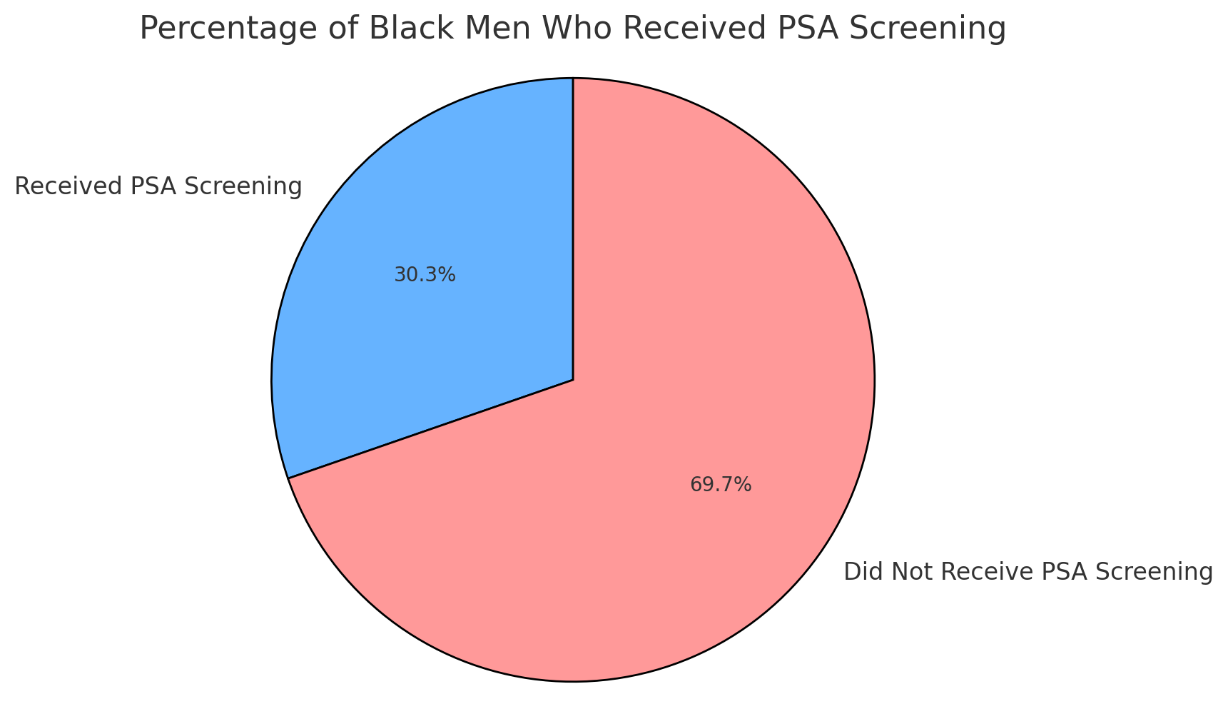 Part of the problem lies in early detection. Prostate-Specific Antigen, known as PSA, is a screening test designed specifically for early detection. Although they are most at-risk for developing prostate cancer, only 30.3% of Black men receive PSA screening, according to the National Institute of Health.